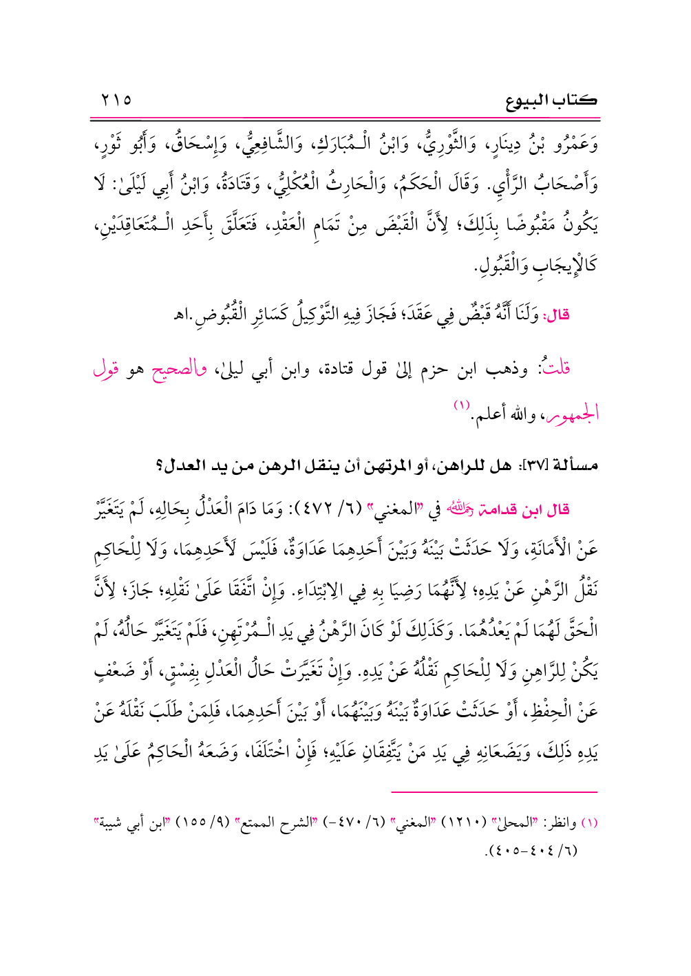 (¬١) وانظر: «المحلى» (١٢١٠) «المغني» (٦/ ٤٧٠ - ) «الشرح الممتع» (٩/ ١٥٥) «ابن أبي شيبة» (٦/ ٤٠٤ - ٤٠٥).