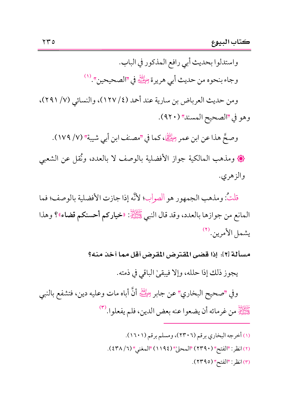قلتُ: ومذهب الجمهور هو الصواب؛ لأنَّه إذا جازت الأفضلية بالوصف؛ فما المانع من جوازها بالعدد، وقد قال النبي -صلى الله عليه وعلى آله وسلم-: «خياركم أحسنكم قضاء»؟ وهذا يشمل الأمرين. (¬٢)