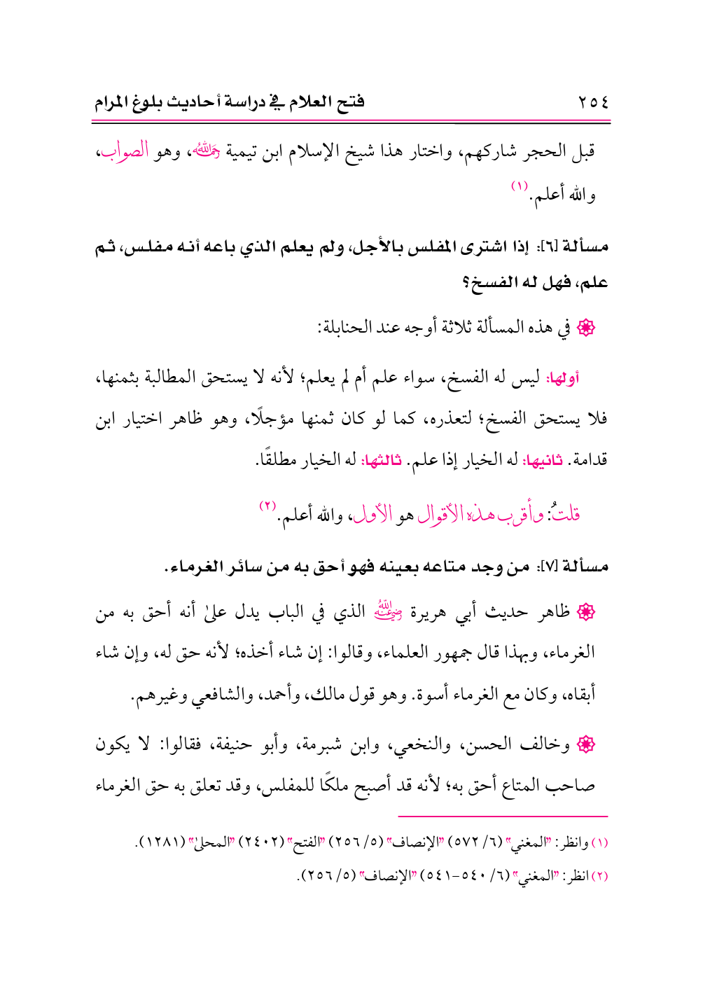 (¬١) وانظر: «المغني» (٦/ ٥٧٢) «الإنصاف» (٥/ ٢٥٦) «الفتح» (٢٤٠٢) «المحلى» (١٢٨١).