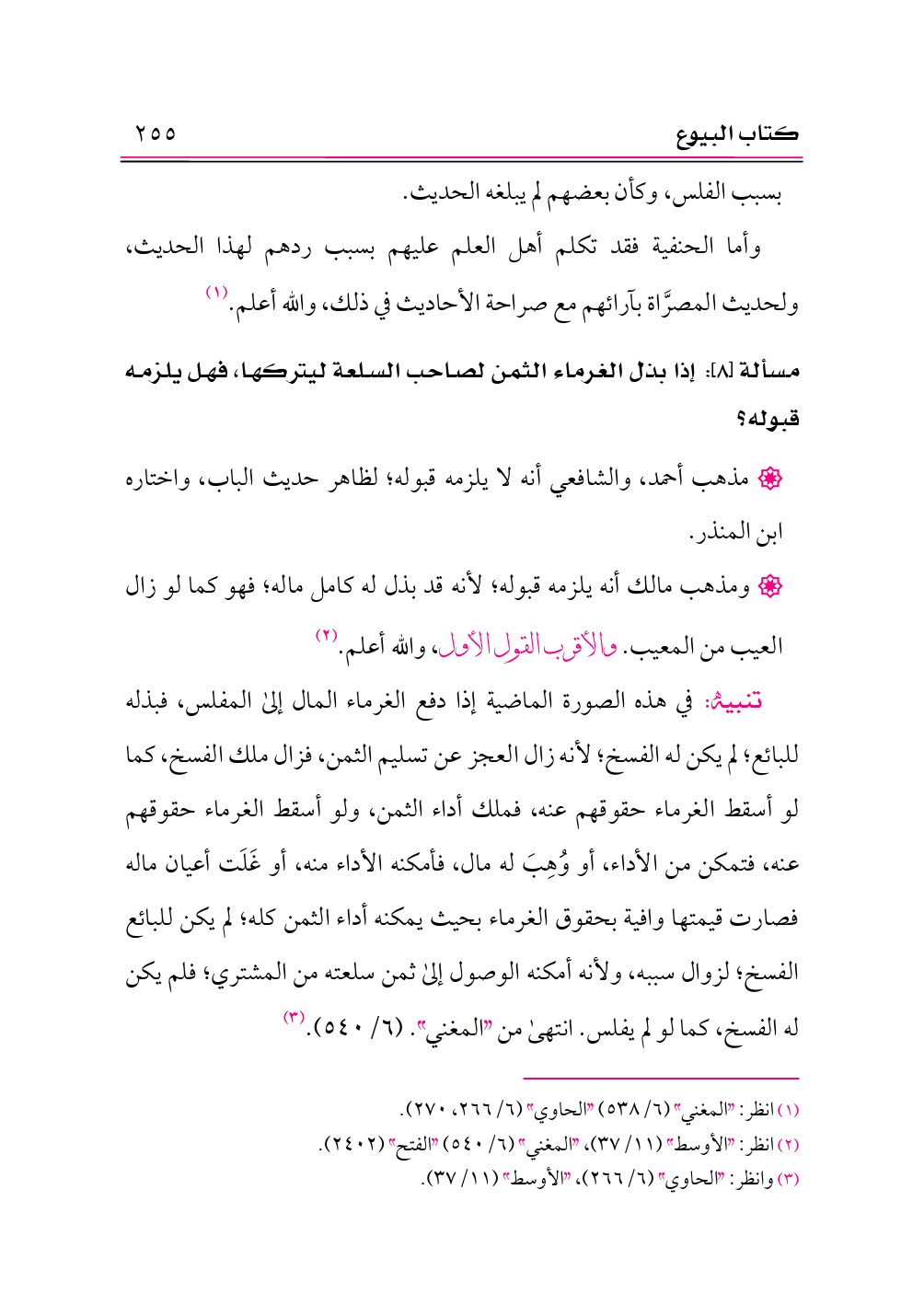(¬١) انظر: «المغني» (٦/ ٥٣٨) «الحاوي» (٦/ ٢٦٦، ٢٧٠).