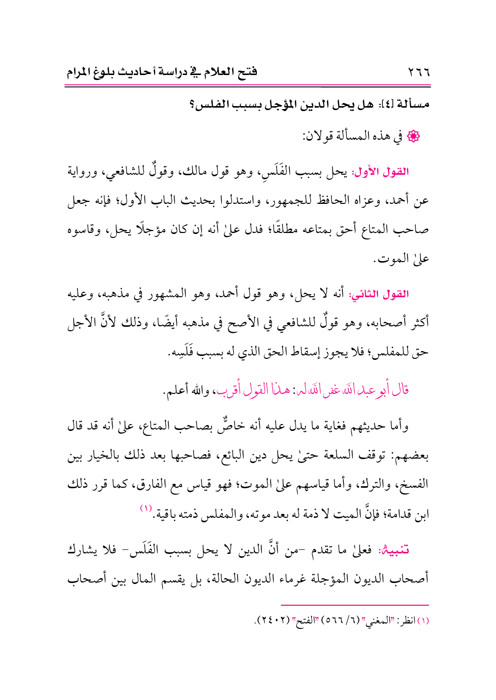 مسألة [٤]: هل يحل الدين المؤجل بسبب الفلس؟