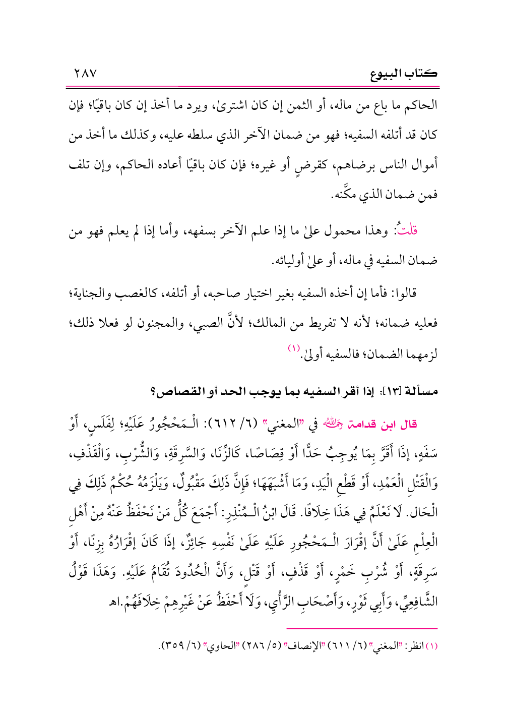 قلتُ: وهذا محمول على ما إذا علم الآخر بسفهه، وأما إذا لم يعلم فهو من ضمان السفيه في ماله، أو على أوليائه.