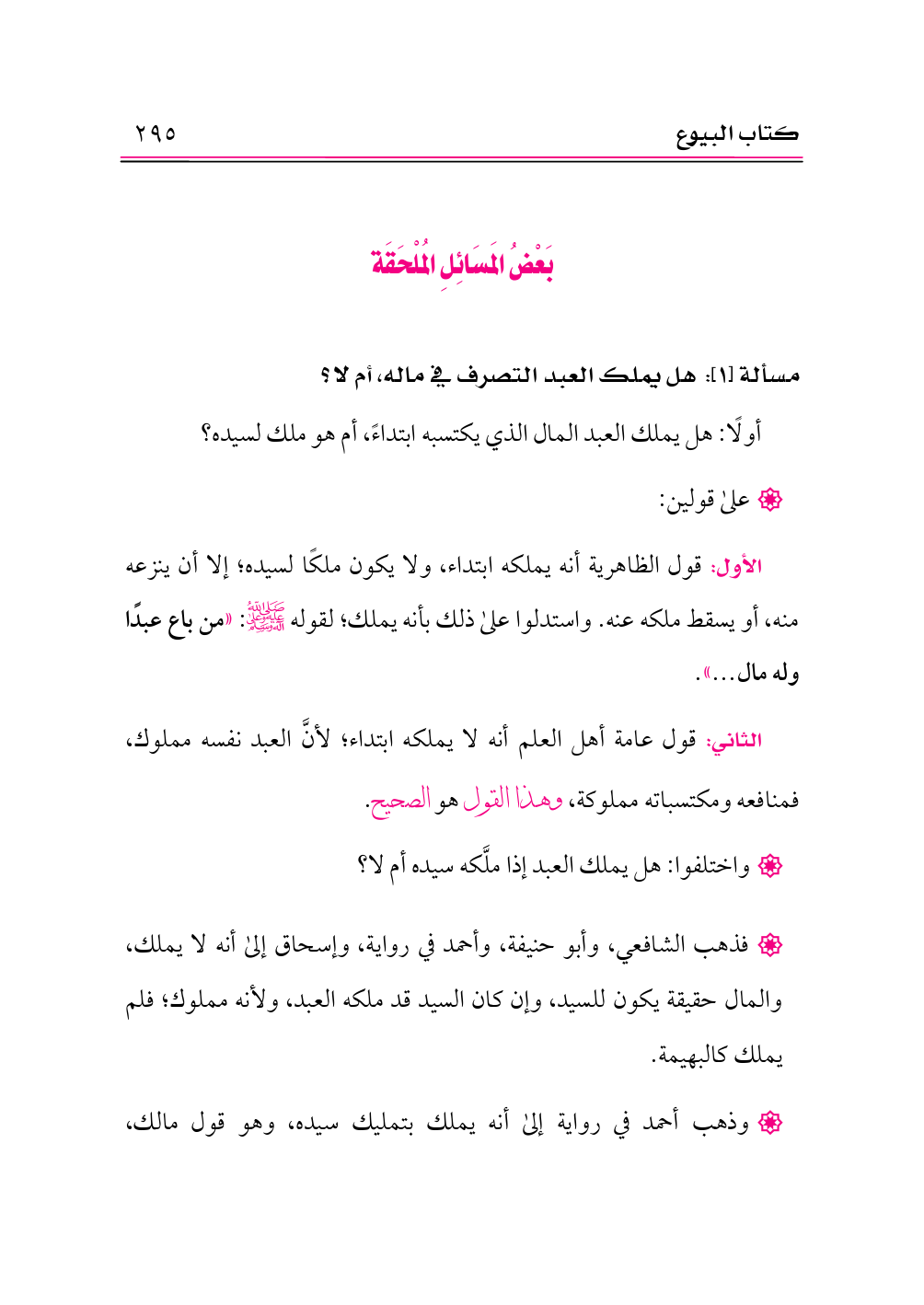 مسألة [١]: هل يملك العبد التصرف في ماله، أم لا؟