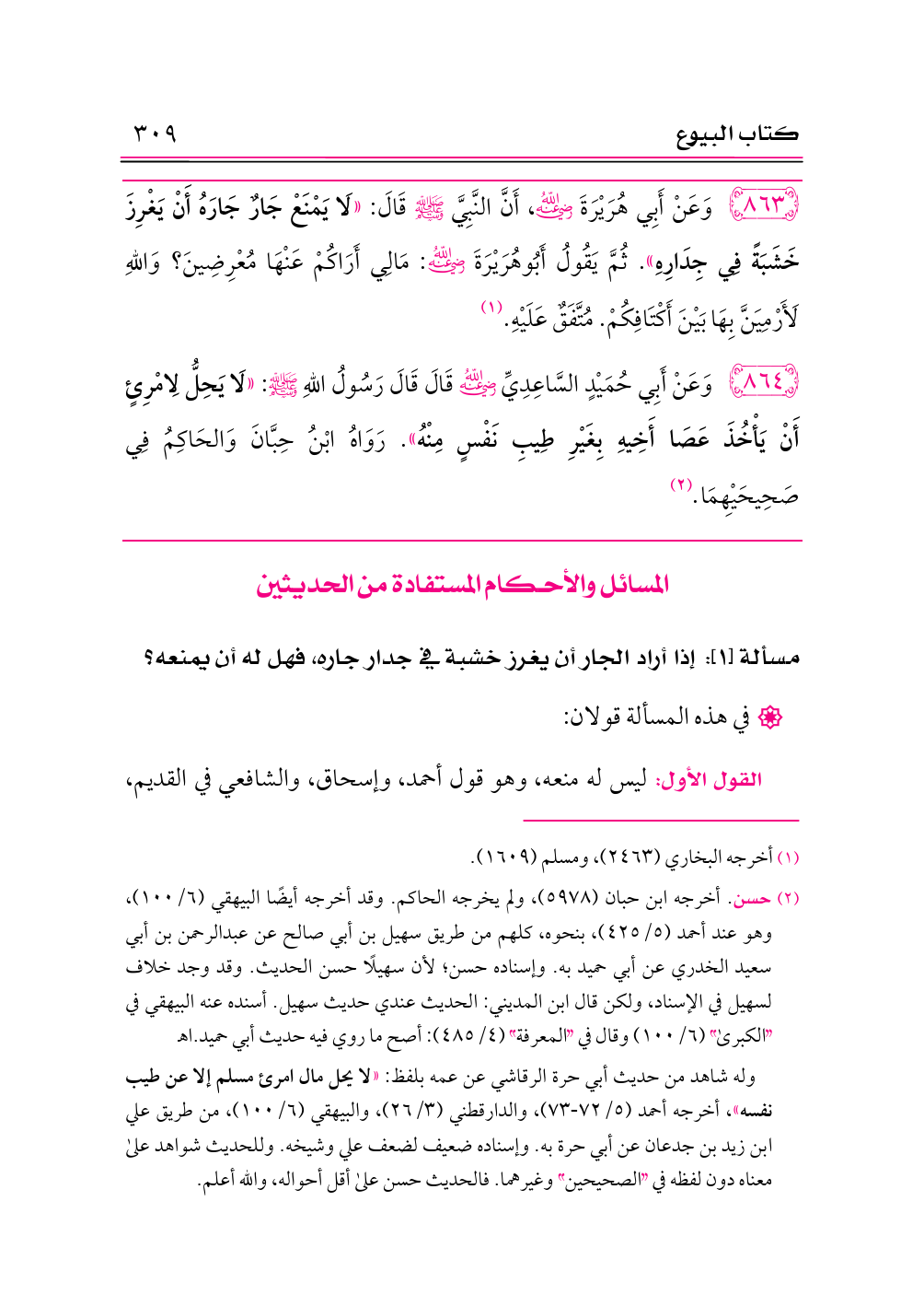 ٨٦٤ - وَعَنْ أَبِي حُمَيْدٍ السَّاعِدِيِّ -رضي الله عنه- قَالَ قَالَ رَسُولُ اللهِ - صلى الله عليه وسلم -: «لَا يَحِلُّ لِامْرِئٍ أَنْ يَأْخُذَ عَصَا أَخِيهِ بِغَيْرِ طِيبِ نَفْسٍ مِنْهُ». رَوَاهُ ابْنُ حِبَّانَ وَالحَاكِمُ فِي صَحِيحَيْهِمَا. (¬٢)