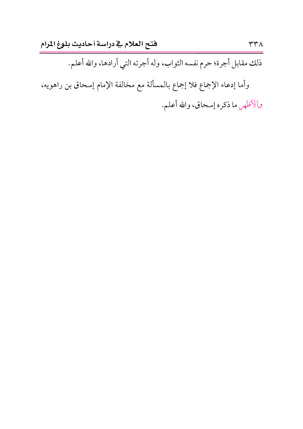 وأما إدعاء الإجماع فلا إجماع بالمسألة مع مخالفة الإمام إسحاق بن راهويه، والأظهر ما ذكره إسحاق، والله أعلم.