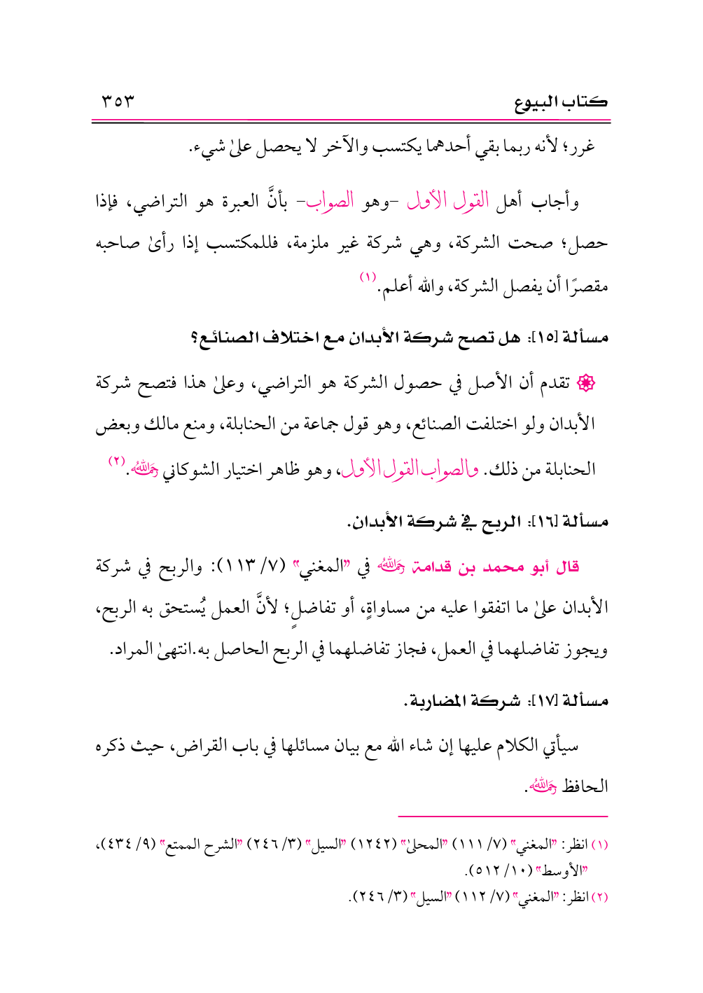 سيأتي الكلام عليها إن شاء الله مع بيان مسائلها في باب القراض، حيث ذكره الحافظ -رحمه الله-.