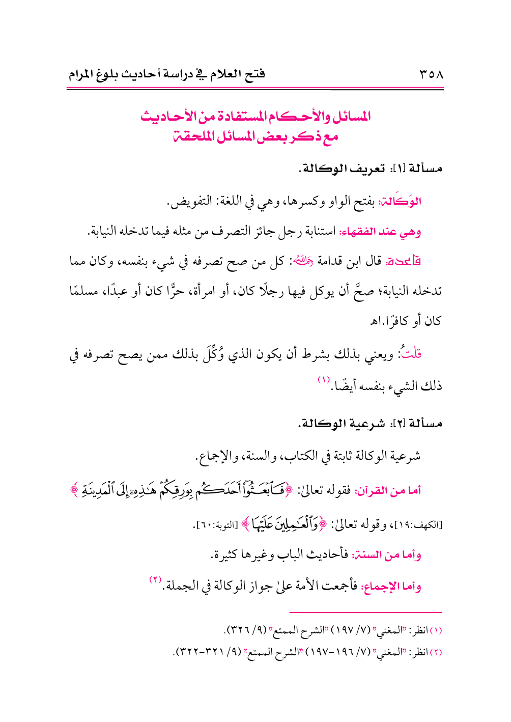 (¬١) انظر: «المغني» (٧/ ١٩٧) «الشرح الممتع» (٩/ ٣٢٦).