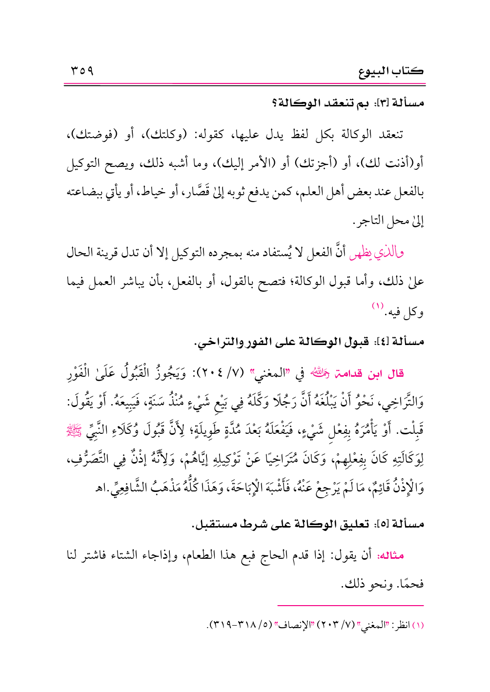 مسألة [٤]: قبول الوكالة على الفور والتراخي.
