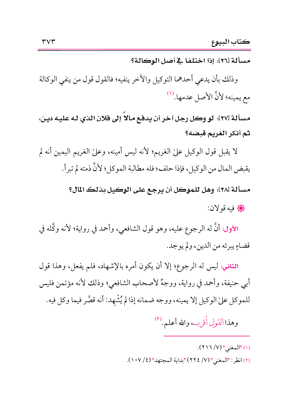 (¬٢) انظر: «المغني» (٧/ ٢٢٤) «بداية المجتهد» (٤/ ١٠٧).