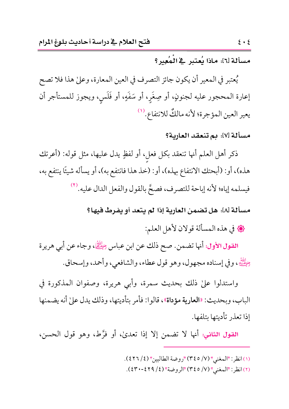 مسألة [٦]: ماذا يُعتبر في الْمُعِير؟