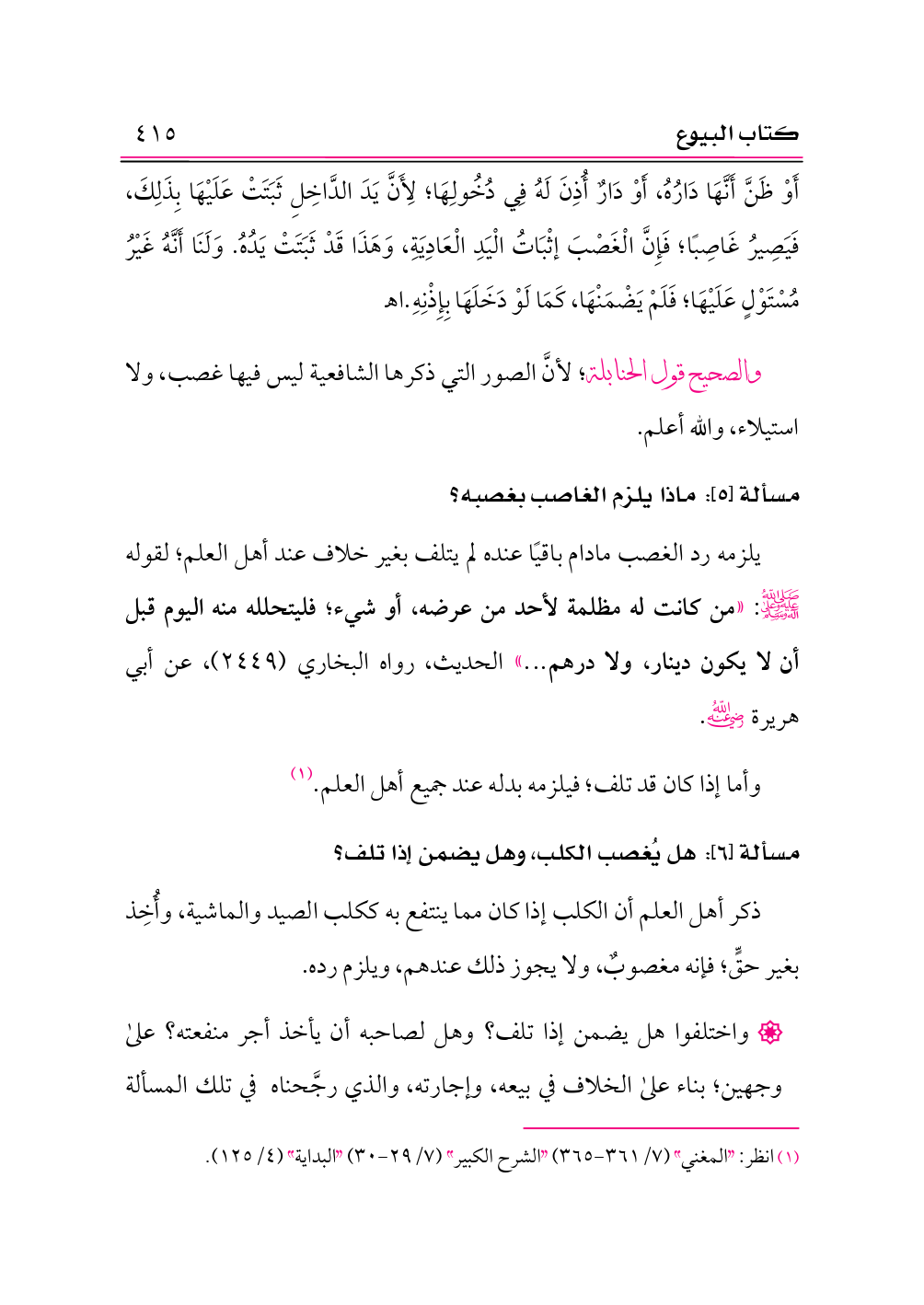 (¬١) انظر: «المغني» (٧/ ٣٦١ - ٣٦٥) «الشرح الكبير» (٧/ ٢٩ - ٣٠) «البداية» (٤/ ١٢٥).