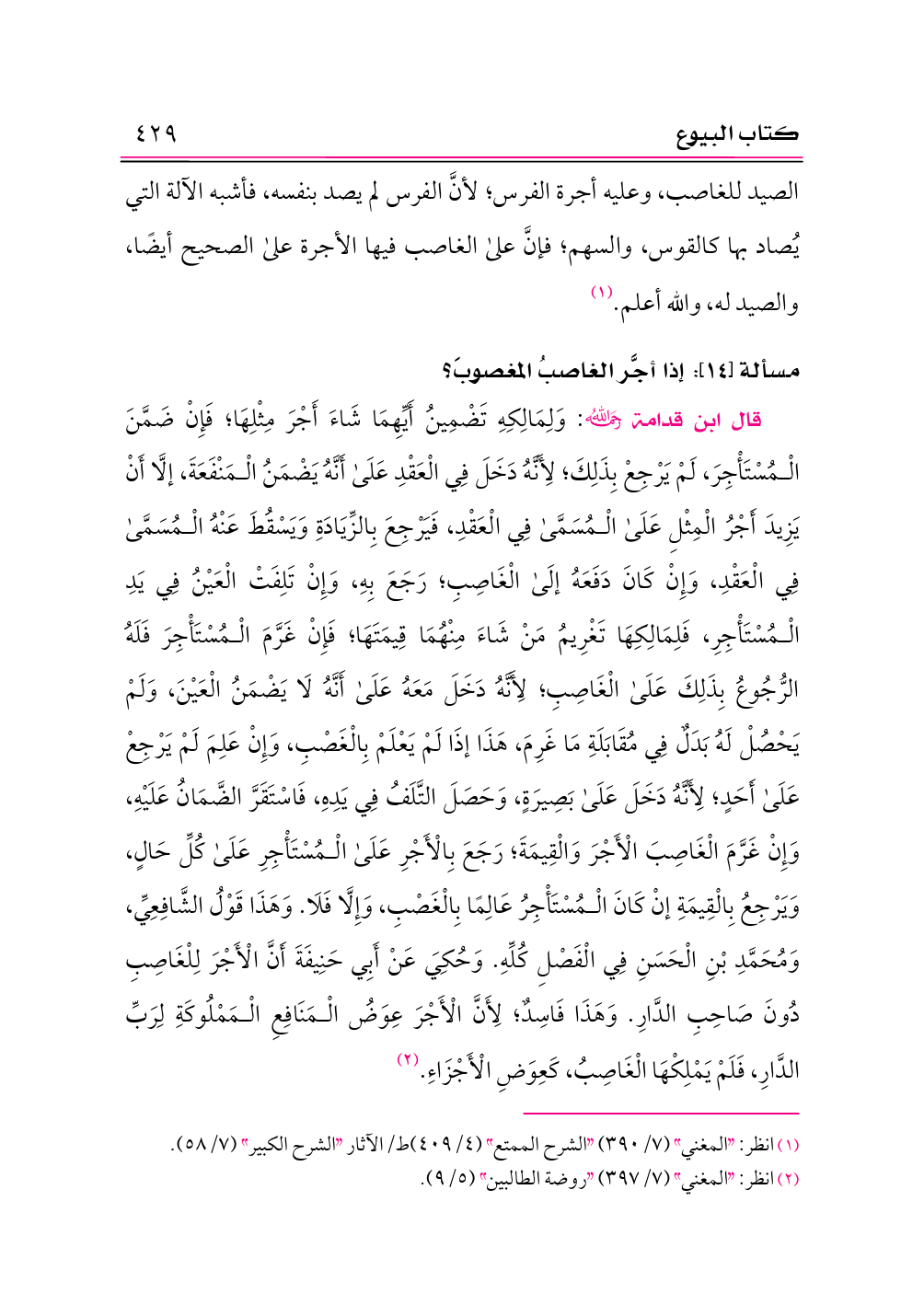 مسألة [١٤]: إذا أجَّر الغاصبُ المغصوبَ؟