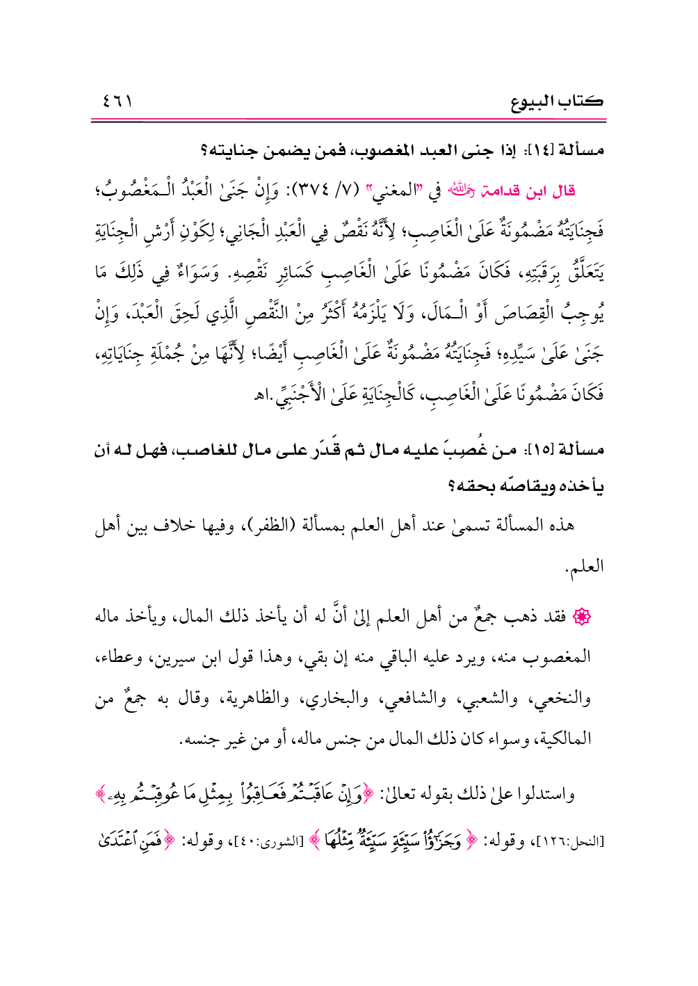 مسألة [١٥]: من غُصِبَ عليه مال ثم قَدَر على مال للغاصب، فهل له أن يأخذه ويقاصّه بحقه؟
