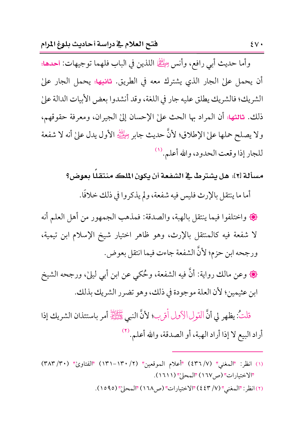 قلتُ: يظهر لي أنَّ القول الأول أقرب؛ لأنَّ النبي -صلى الله عليه وعلى آله وسلم- أمر باستئذان الشريك إذا أراد البيع لا إذا أراد الهبة، أو الصدقة، والله أعلم. (¬٢)