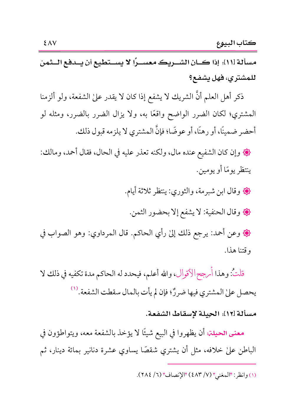 مسألة [١٢]: الحِيلة لإسقاط الشفعة.