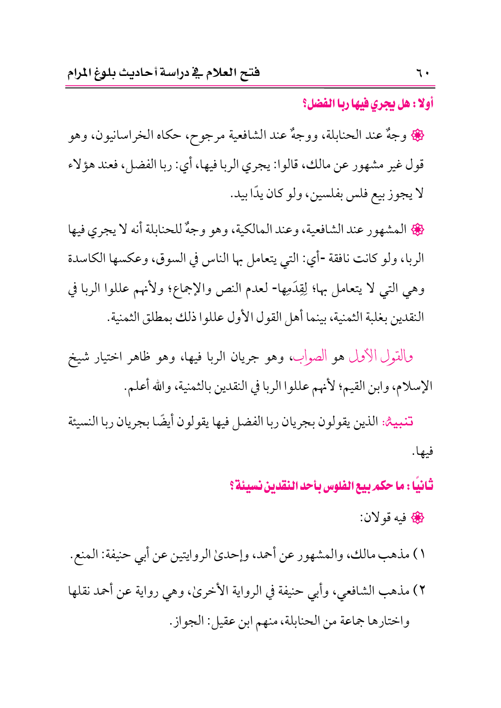 والقول الأول هو الصواب، وهو جريان الربا فيها، وهو ظاهر اختيار شيخ الإسلام، وابن القيم؛ لأنهم عللوا الربا في النقدين بالثمنية، والله أعلم.