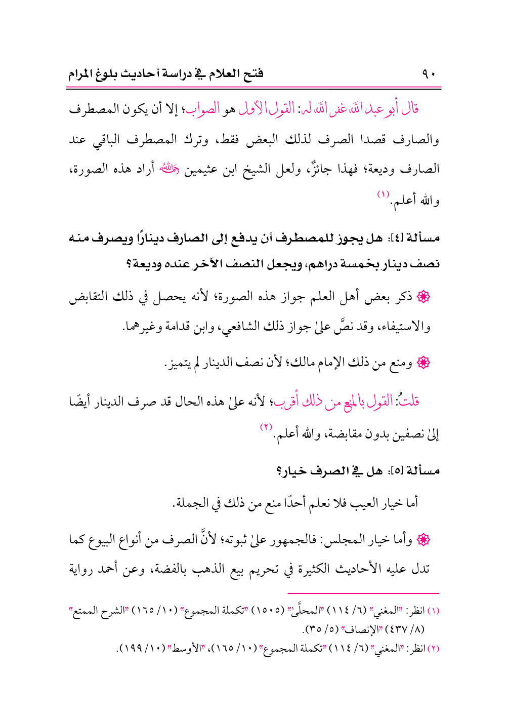 قال أبو عبد الله غفر الله له: القول الأول هو الصواب؛ إلا أن يكون المصطرف والصارف قصدا الصرف لذلك البعض فقط، وترك المصطرف الباقي عند الصارف وديعة؛ فهذا جائزٌ، ولعل الشيخ ابن عثيمين -رحمه الله- أراد هذه الصورة، والله أعلم. (¬١)