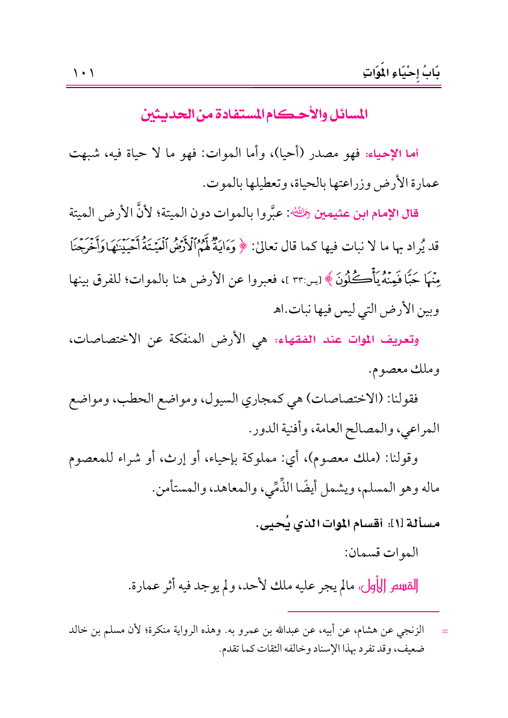 مسألة [١]: أقسام الموات الذي يُحيى.