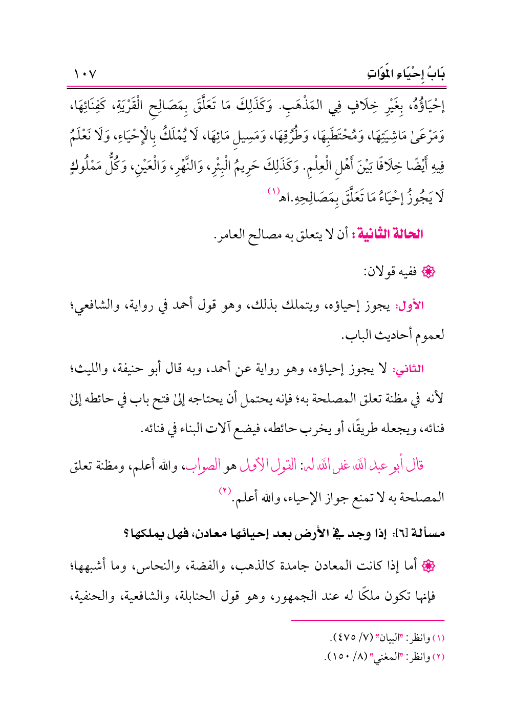 قال أبو عبد الله غفر الله له: القول الأول هو الصواب، والله أعلم، ومظنة تعلق المصلحة به لا تمنع جواز الإحياء، والله أعلم. (¬٢)