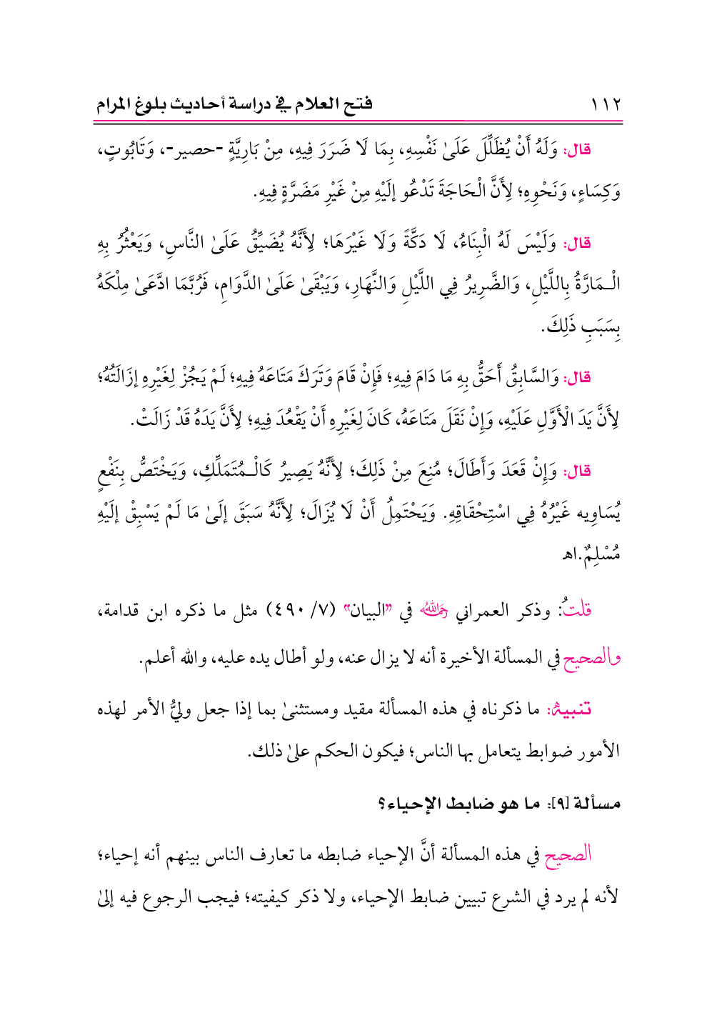 مسألة [٩]: ما هو ضابط الإحياء؟