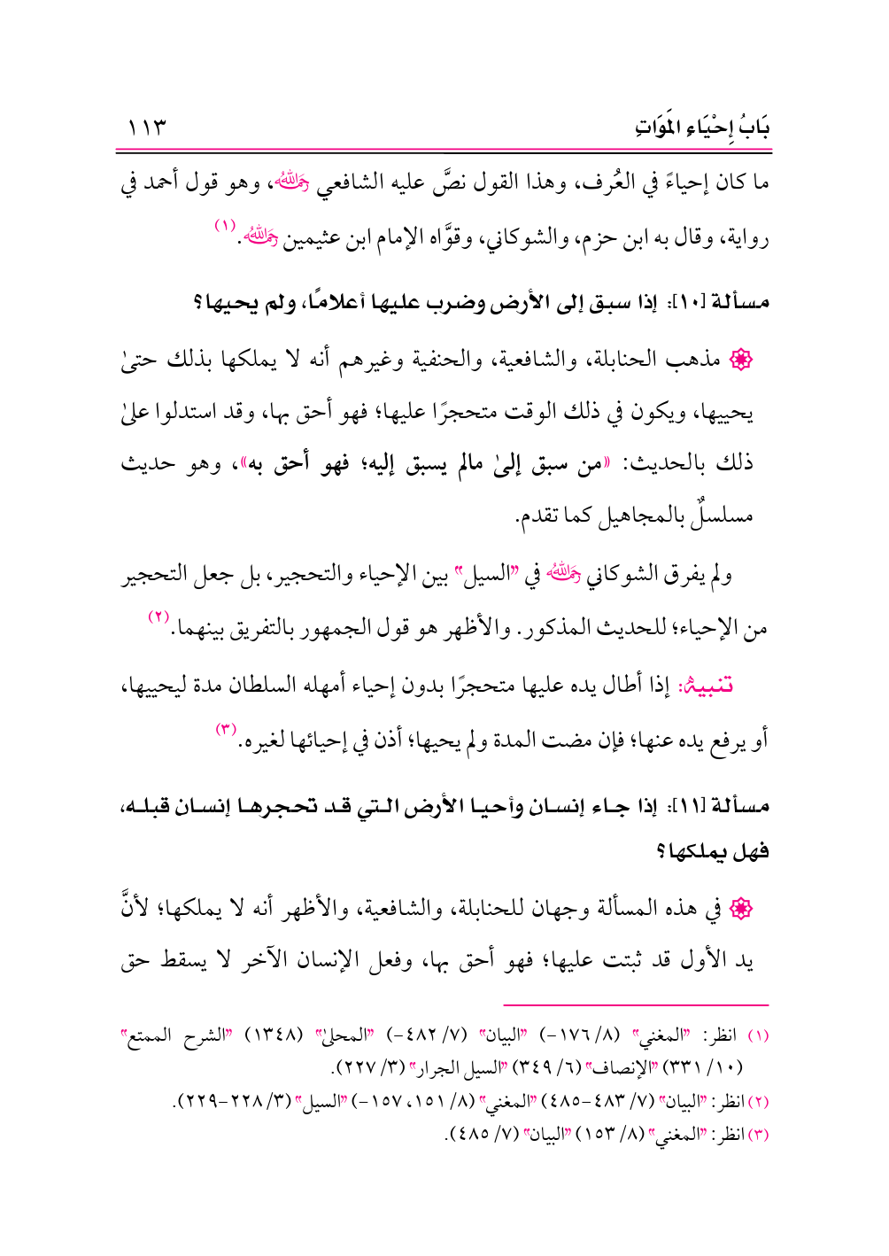 (¬١) انظر: «المغني» (٨/ ١٧٦ - ) «البيان» (٧/ ٤٨٢ - ) «المحلى» (١٣٤٨) «الشرح الممتع» (١٠/ ٣٣١) «الإنصاف» (٦/ ٣٤٩) «السيل الجرار» (٣/ ٢٢٧).