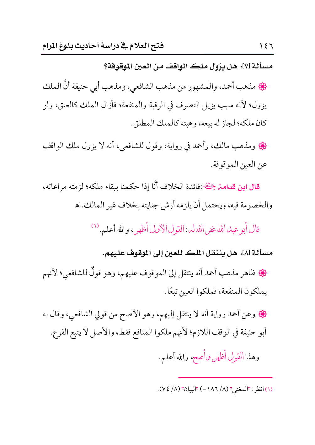 (¬١) انظر: «المغني» (٨/ ١٨٦ - ) «البيان» (٨/ ٧٤).