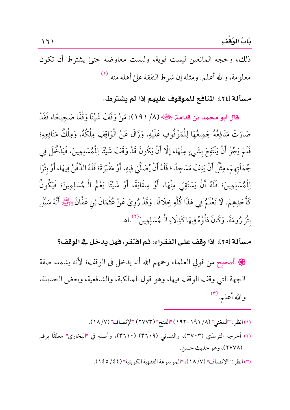 (¬١) انظر: «المغني» (٨/ ١٩١ - ١٩٢) «الفتح» (٢٧٧٣) «الإنصاف» (٧/ ١٨).