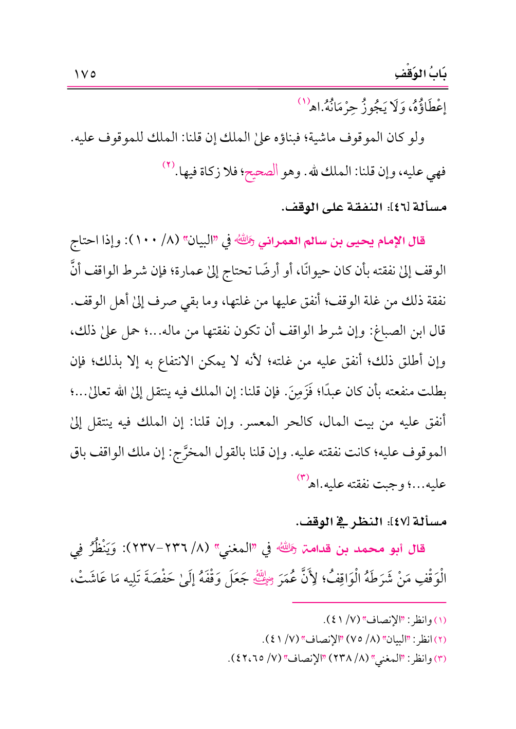 مسألة [٤٦]: النفقة على الوقف.