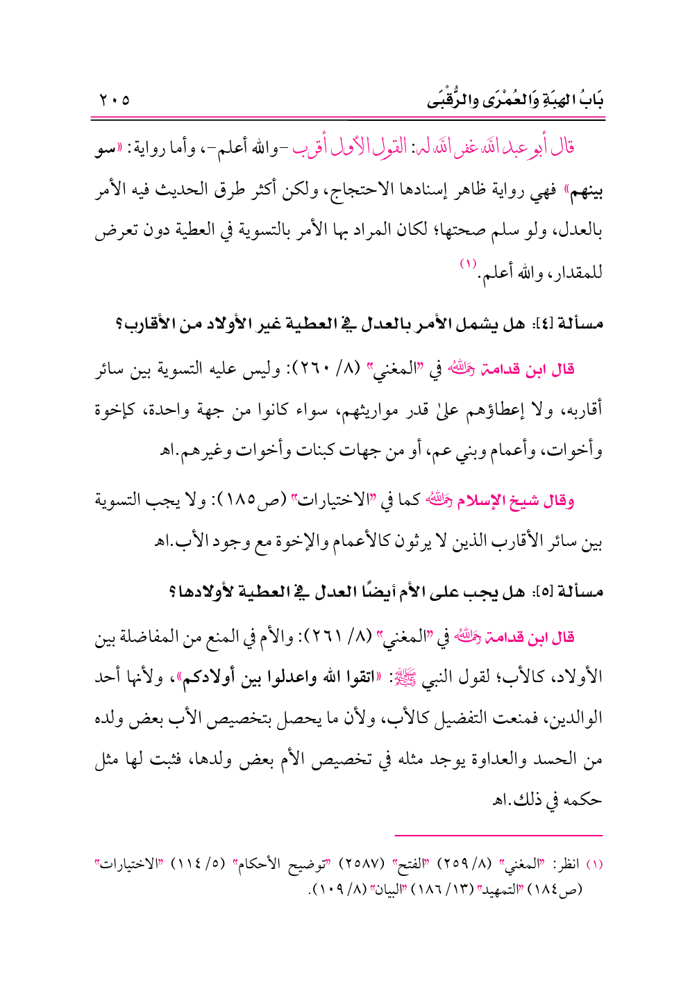 (¬١) انظر: «المغني» (٨/ ٢٥٩) «الفتح» (٢٥٨٧) «توضيح الأحكام» (٥/ ١١٤) «الاختيارات» (ص ١٨٤) «التمهيد» (١٣/ ١٨٦) «البيان» (٨/ ١٠٩).