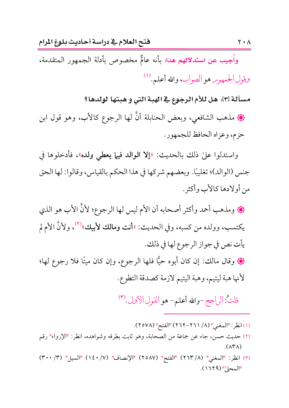 (¬٣) انظر: «المغني» (٨/ ٢٦٣) «الفتح» (٢٥٨٧) «الإنصاف» (٧/ ١٤٠) «السيل» (٣/ ٣٠٠) «المحلى» (١٦٢٩).