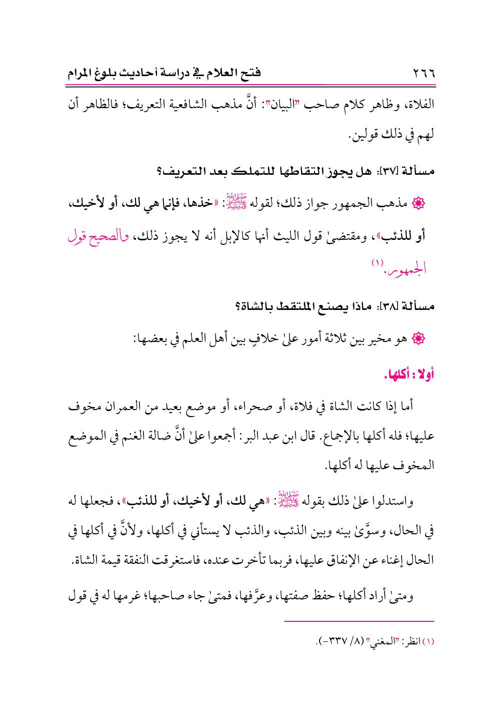 مسألة [٣٨]: ماذا يصنع الملتقط بالشاة؟