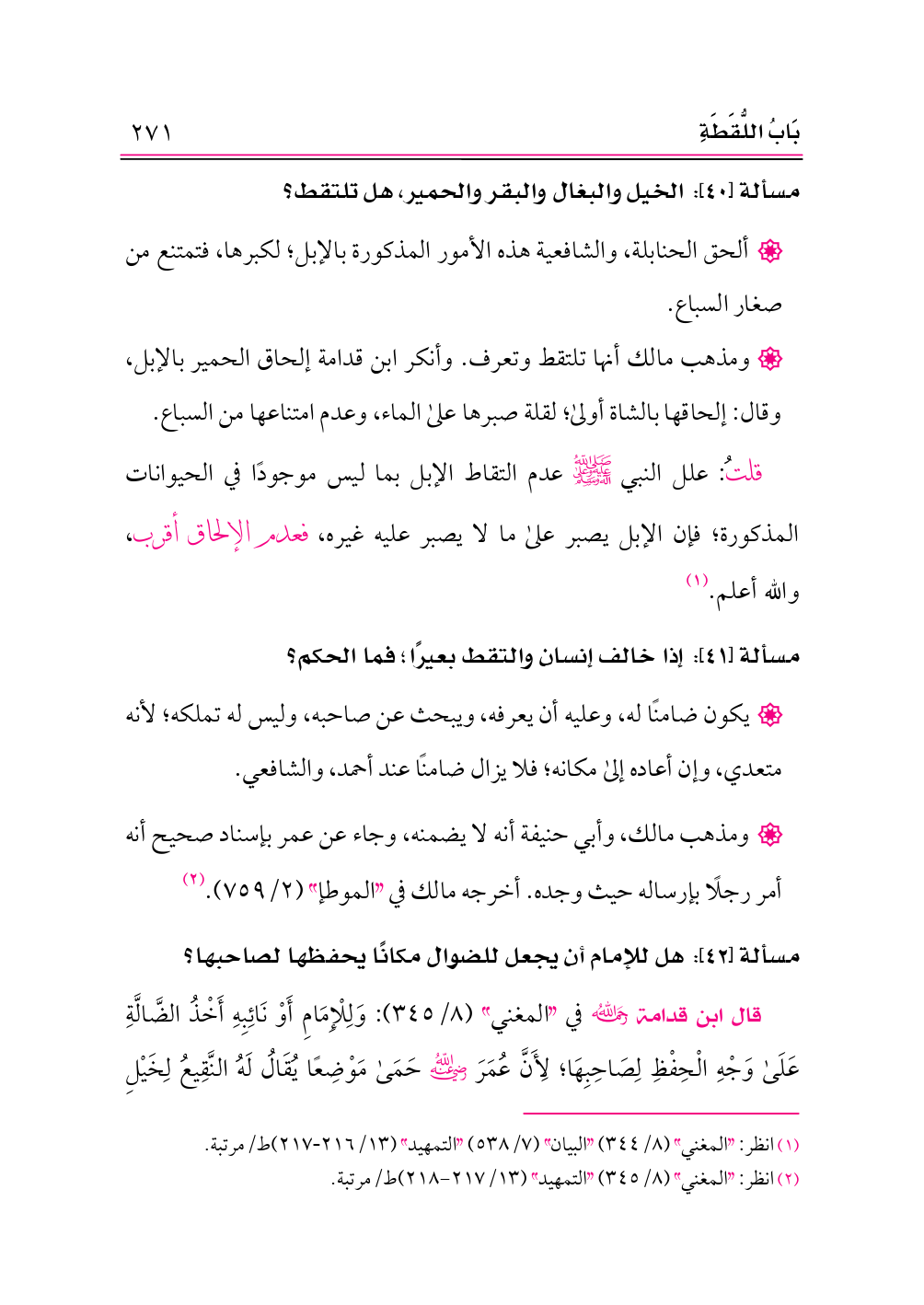 مسألة [٤٠]: الخيل والبغال والبقر والحمير، هل تلتقط؟