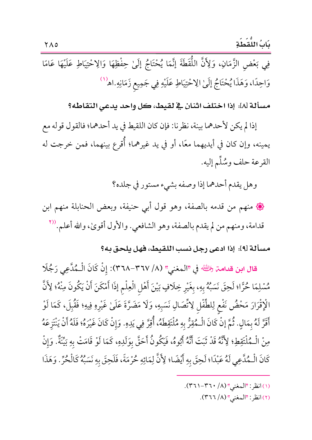 مسألة [٨]: إذا اختلف اثنان في لقيط، كل واحد يدعي التقاطه؟