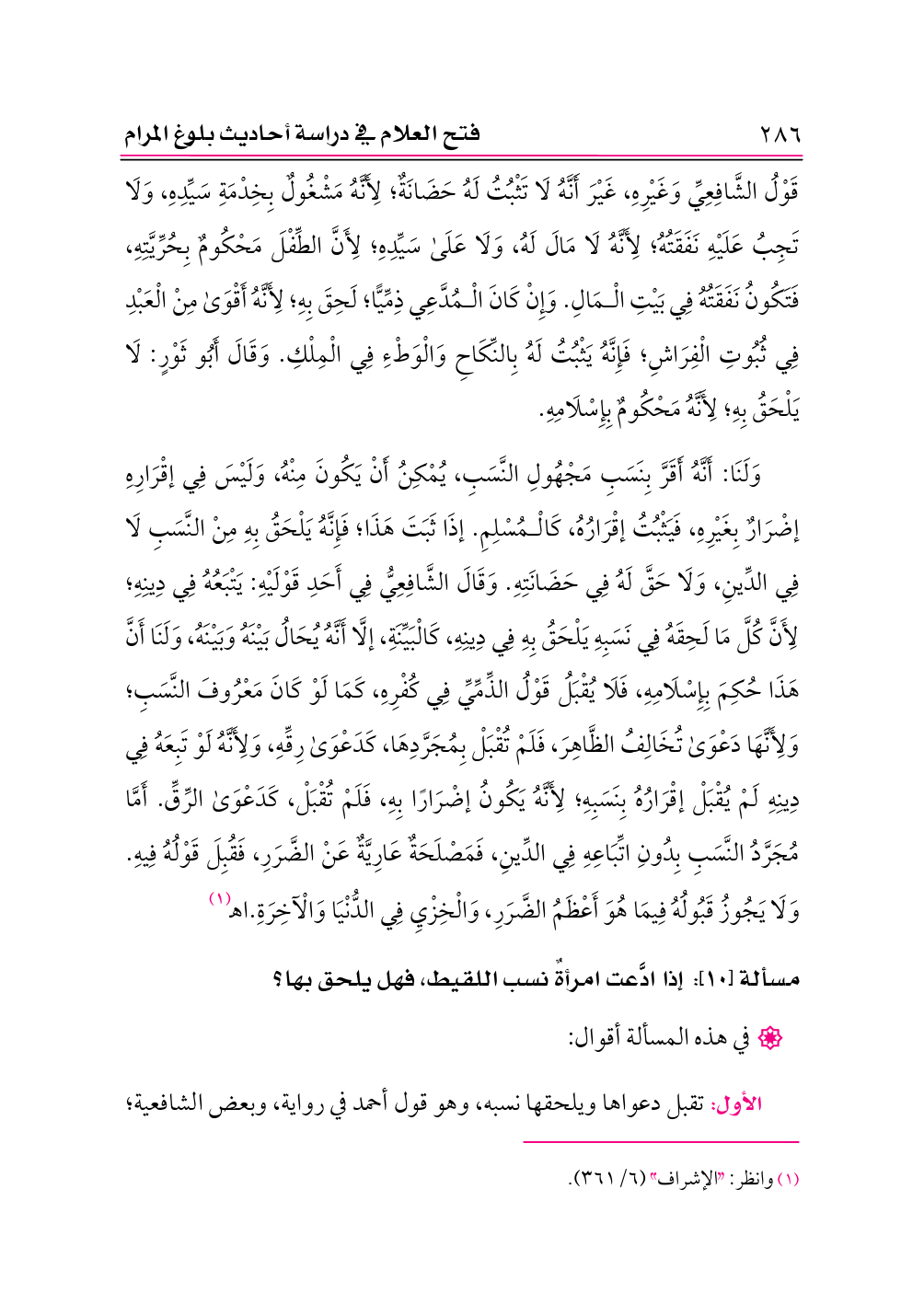 مسألة [١٠]: إذا ادَّعت امرأةٌ نسب اللقيط، فهل يلحق بها؟