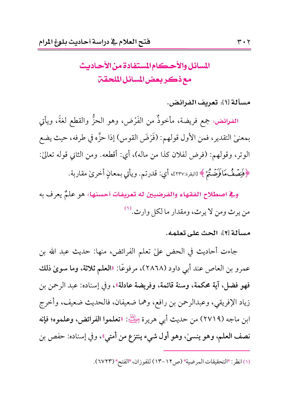 مسألة [١]: تعريف الفرائض.