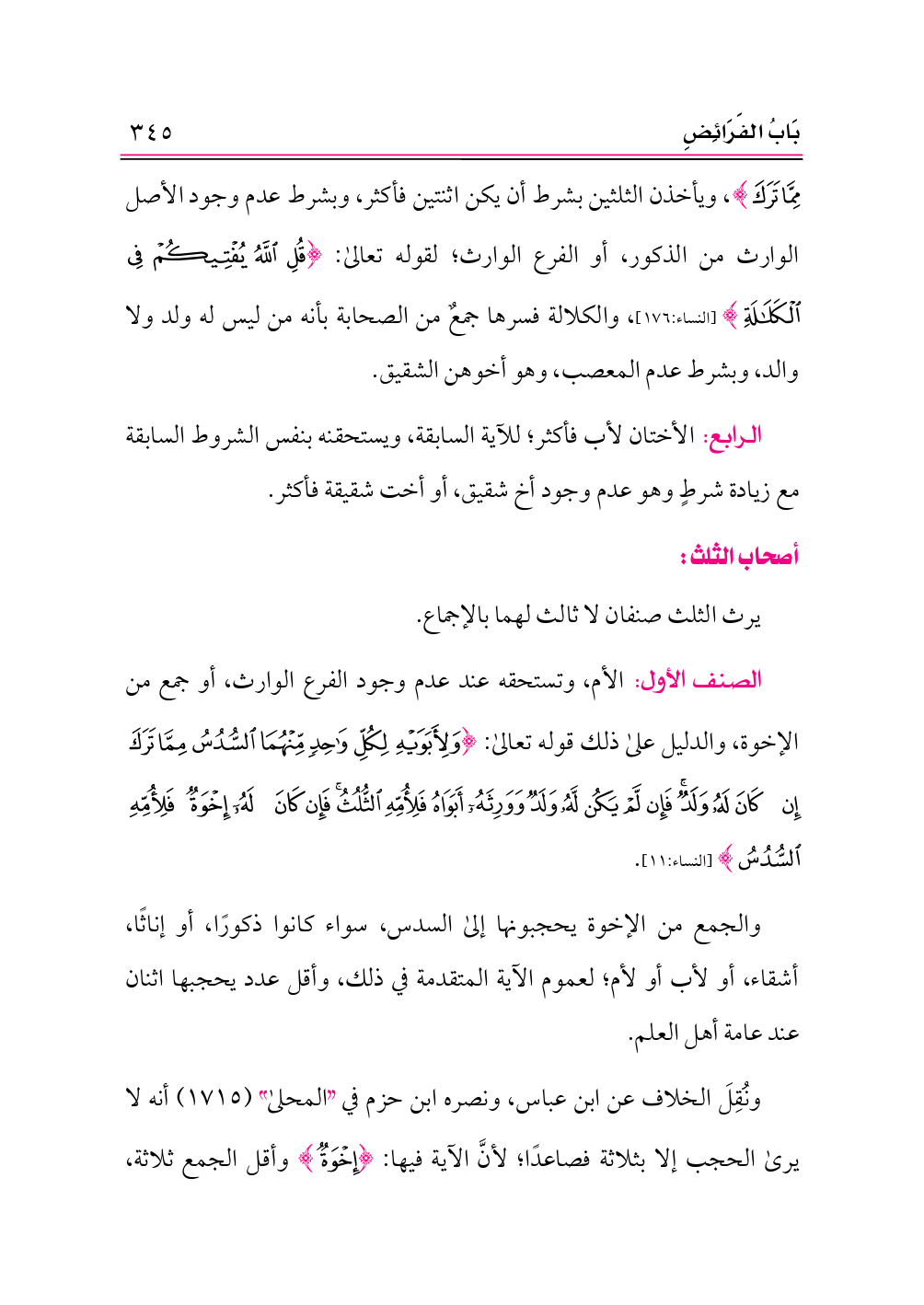 الرابع: الأختان لأب فأكثر؛ للآية السابقة، ويستحقنه بنفس الشروط السابقة مع زيادة شرطٍ وهو عدم وجود أخ شقيق، أو أخت شقيقة فأكثر.