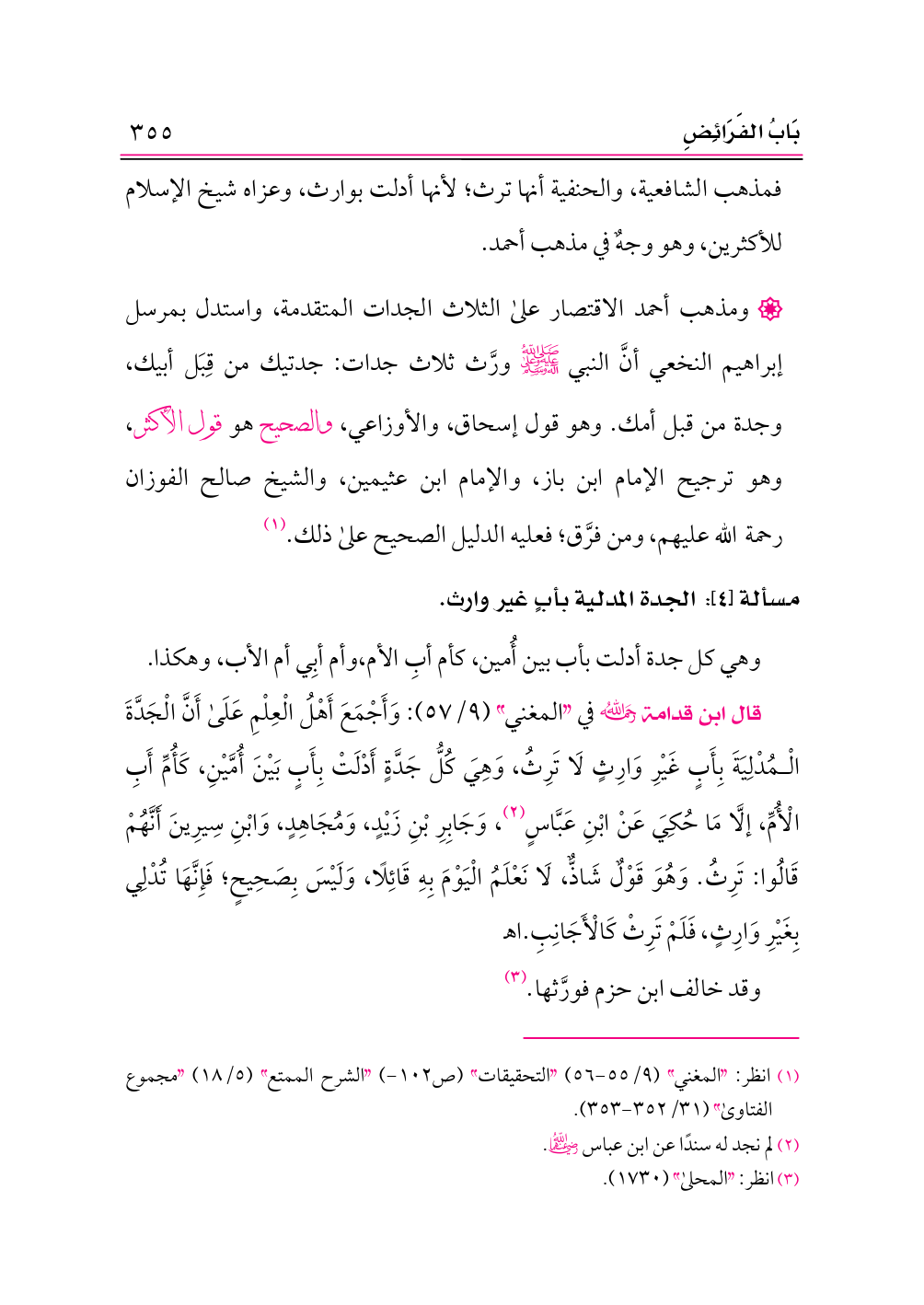 (¬١) انظر: «المغني» (٩/ ٥٥ - ٥٦) «التحقيقات» (ص ١٠٢ - ) «الشرح الممتع» (٥/ ١٨) «مجموع الفتاوى» (٣١/ ٣٥٢ - ٣٥٣).