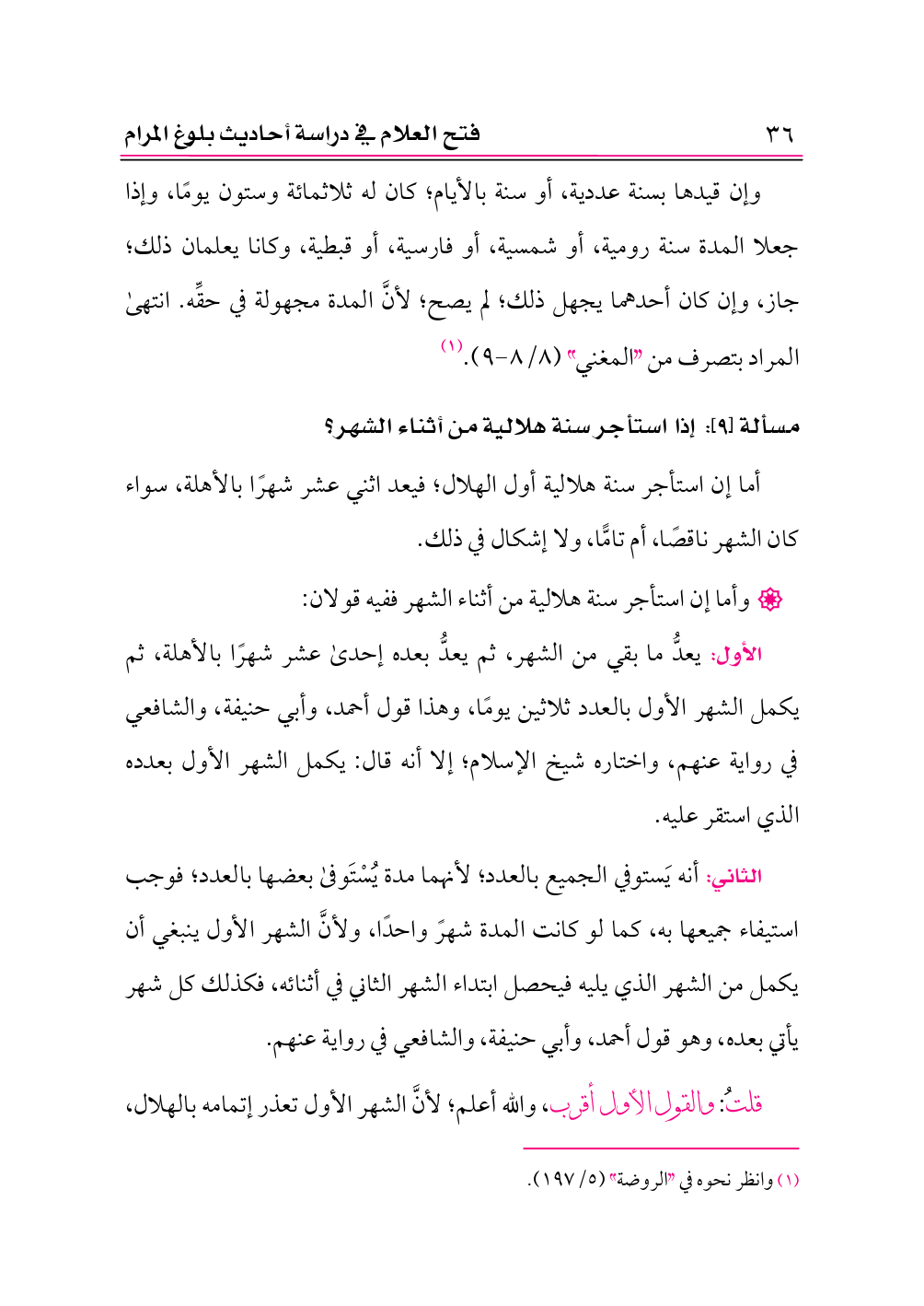مسألة [٩]: إذا استأجر سنة هلالية من أثناء الشهر؟