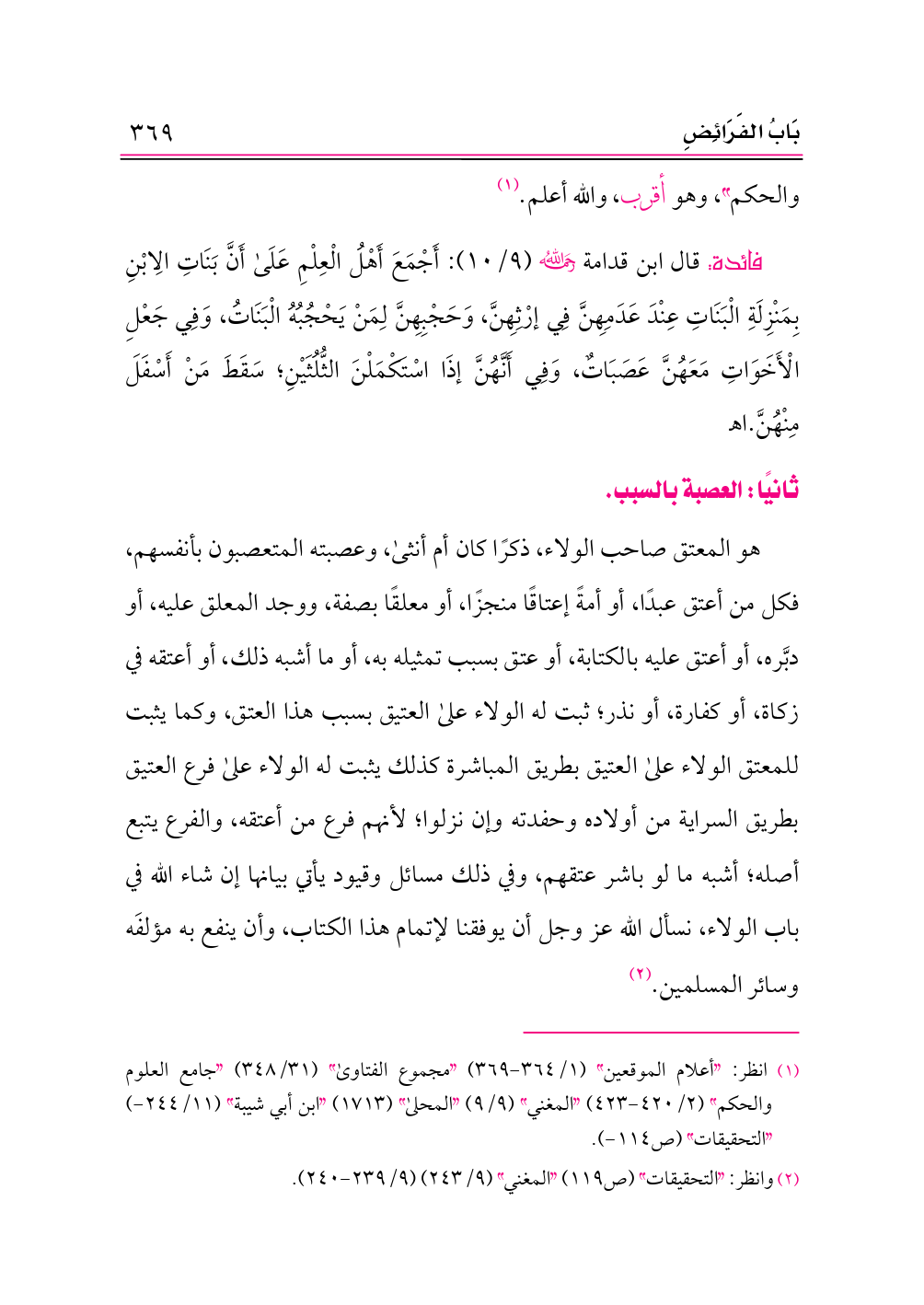 ثانيًا: العصبة بالسبب.