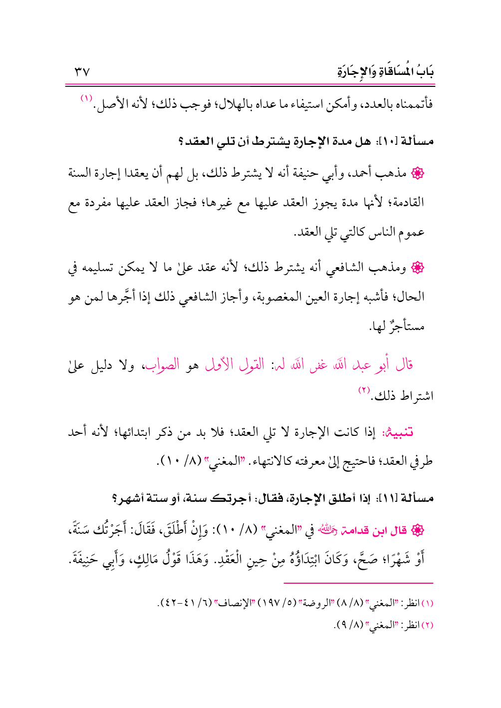(¬١) انظر: «المغني» (٨/ ٨) «الروضة» (٥/ ١٩٧) «الإنصاف» (٦/ ٤١ - ٤٢).
