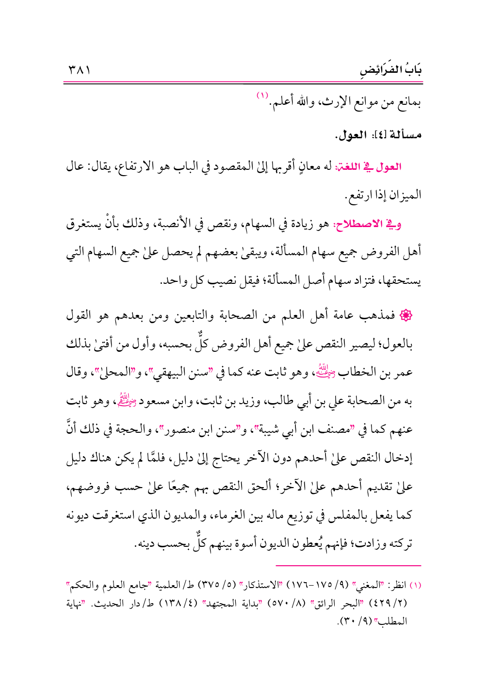 مسألة [٤]: العول.