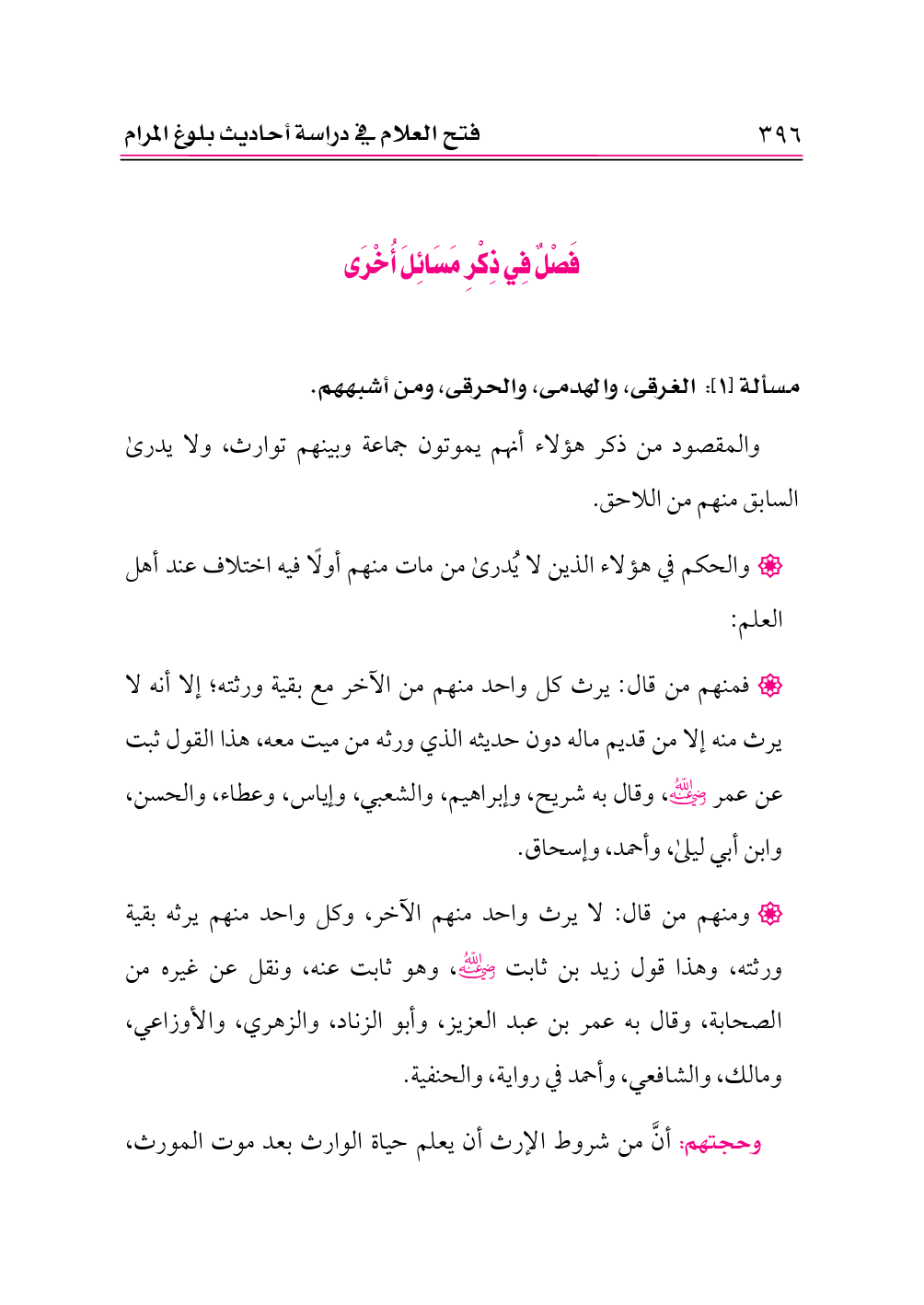 • والحكم في هؤلاء الذين لا يُدرى من مات منهم أولًا فيه اختلاف عند أهل العلم: