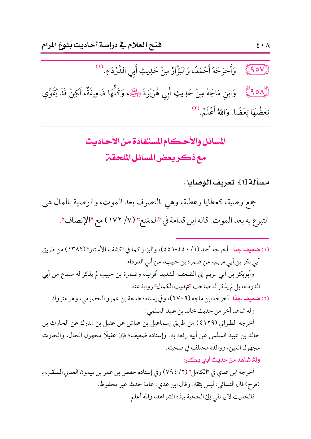 مع ذكر بعض المسائل الملحقة