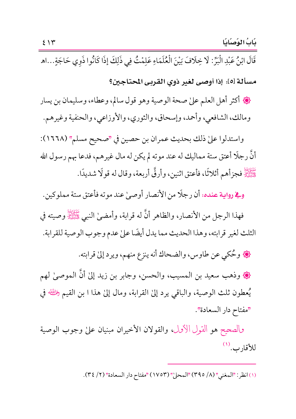 (¬١) انظر: «المغني» (٨/ ٣٩٥) «المحلى» (١٧٥٣) «مفتاح دار السعادة» (٢/ ٣٤).