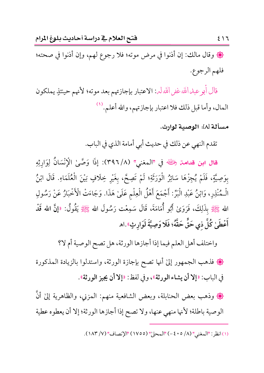 (¬١) انظر: «المغني» (٨/ ٤٠٥ - ) «المحلى» (١٧٥٥) «الإنصاف» (٧/ ١٨٣).