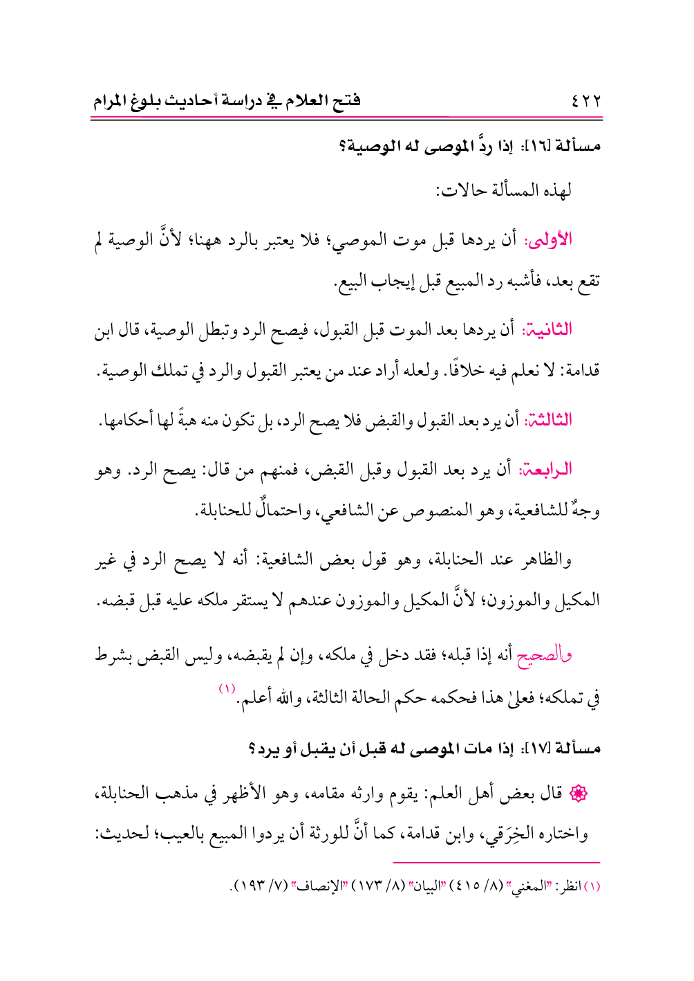 (¬١) انظر: «المغني» (٨/ ٤١٥) «البيان» (٨/ ١٧٣) «الإنصاف» (٧/ ١٩٣).
