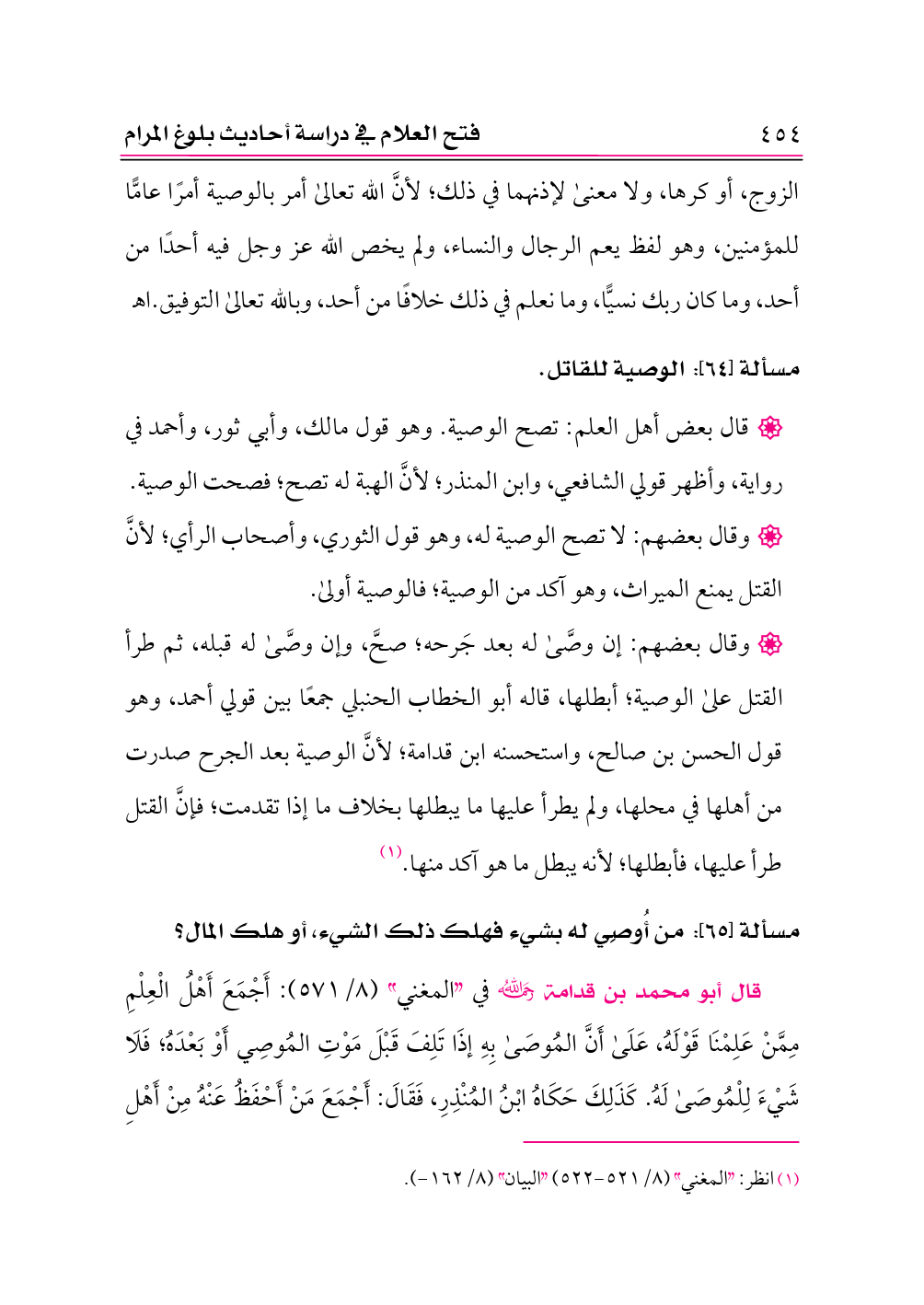 (¬١) انظر: «المغني» (٨/ ٥٢١ - ٥٢٢) «البيان» (٨/ ١٦٢ - ).