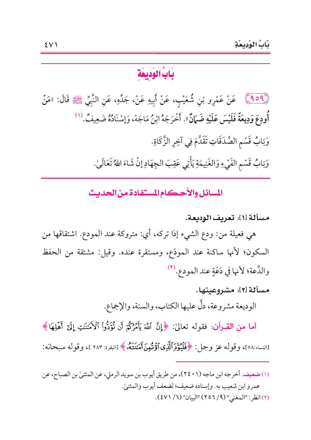 مسألة [١]: تعريف الوديعة.