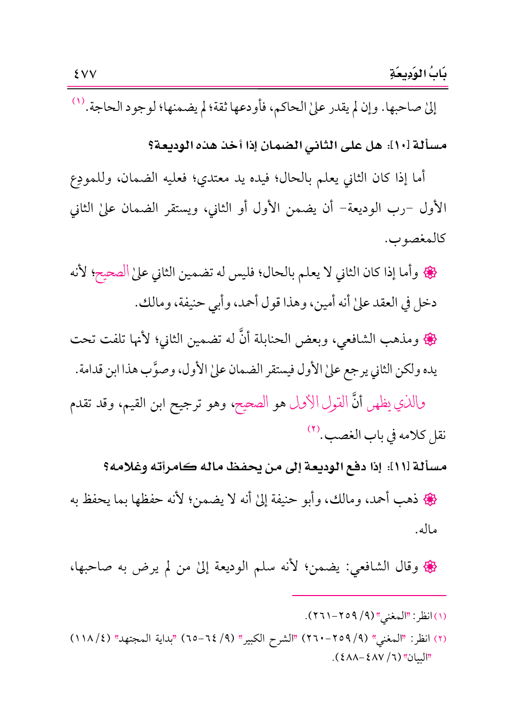 (¬١) انظر: «المغني» (٩/ ٢٥٩ - ٢٦١).