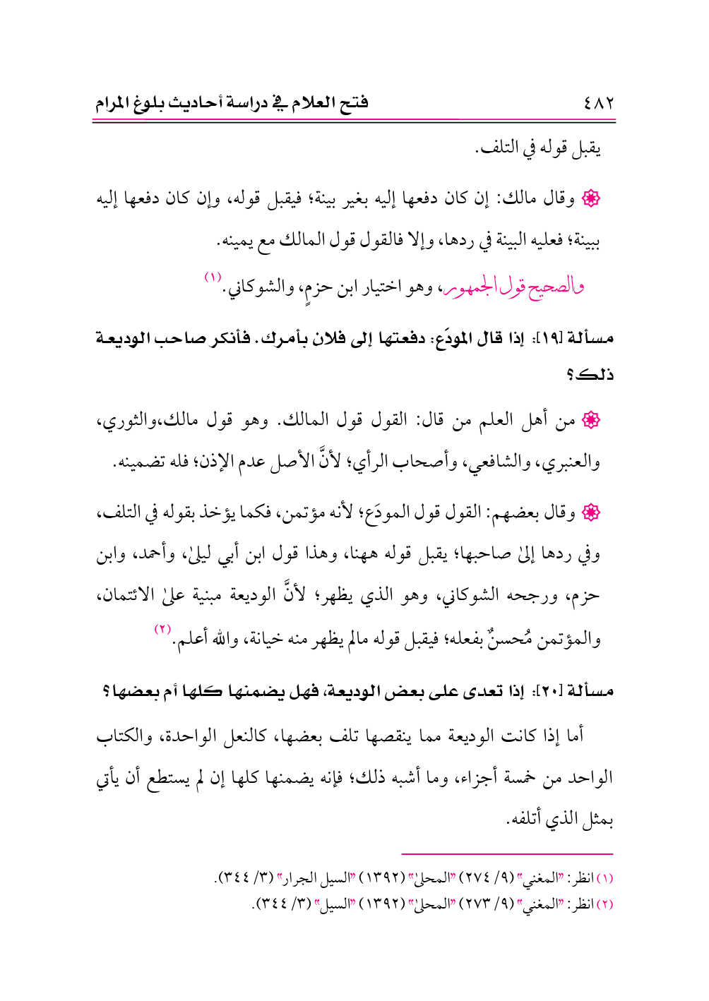 (¬٢) انظر: «المغني» (٩/ ٢٧٣) «المحلى» (١٣٩٢) «السيل» (٣/ ٣٤٤).